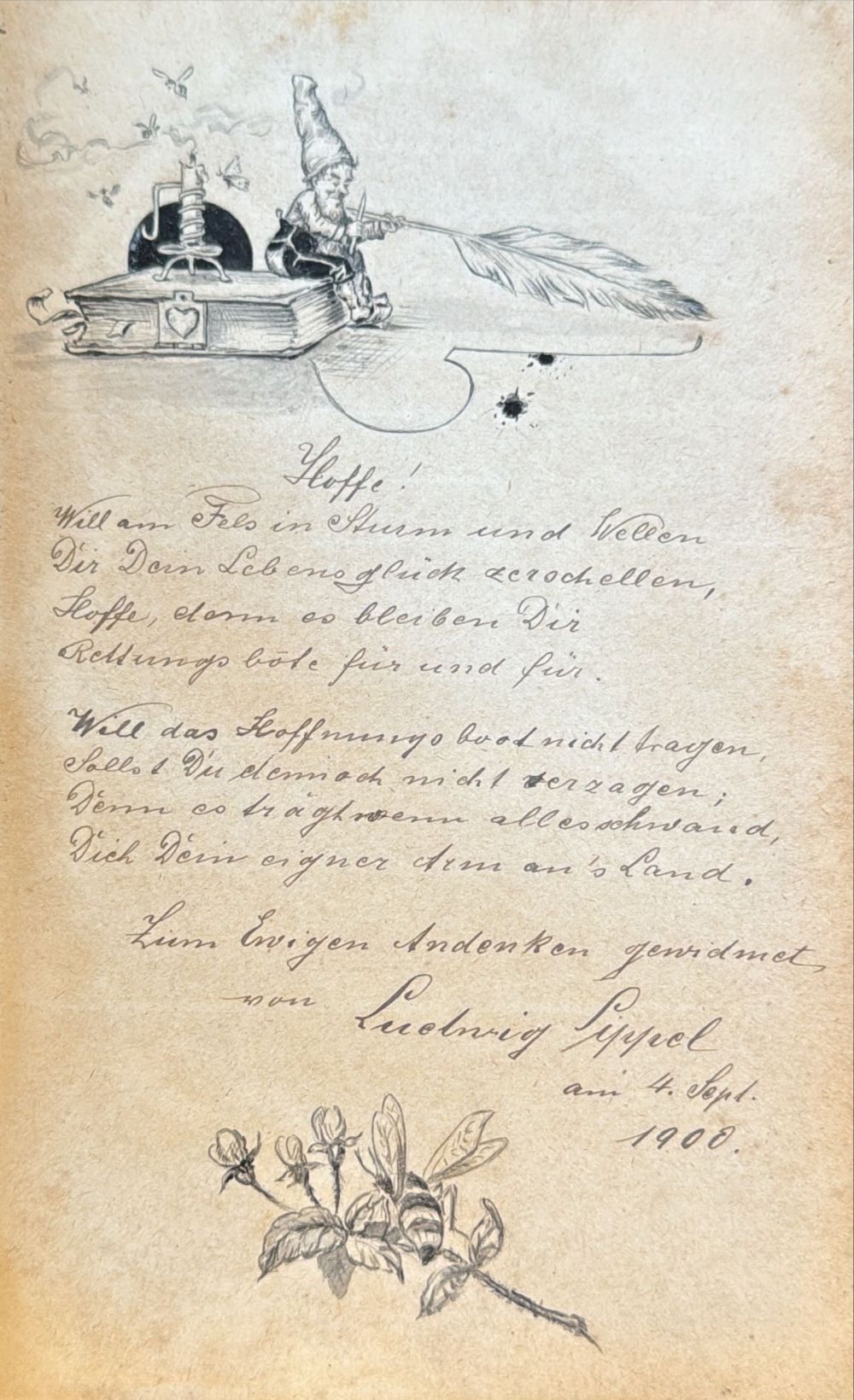 Eintrag in das Poesie-Album der Anna Schmid durch Ludwig Sippel (Ehemann einer Cousine) in Metzingen, 4. September 1900.