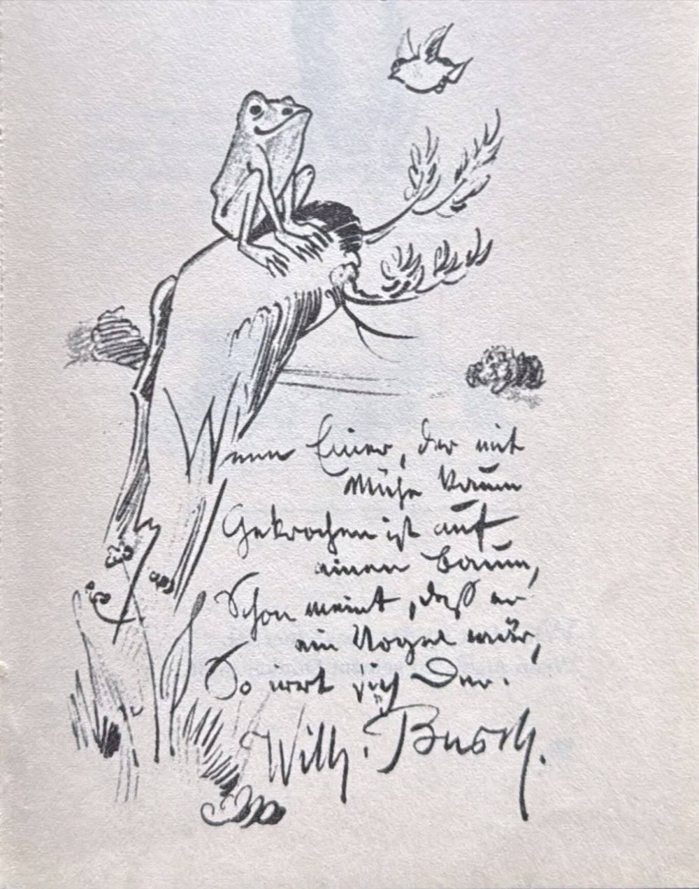 Gedicht-Strophe von Wilhelm Busch (1832 – 1908) aus dem bekannten Gedicht “Der fliegende Frosch”.